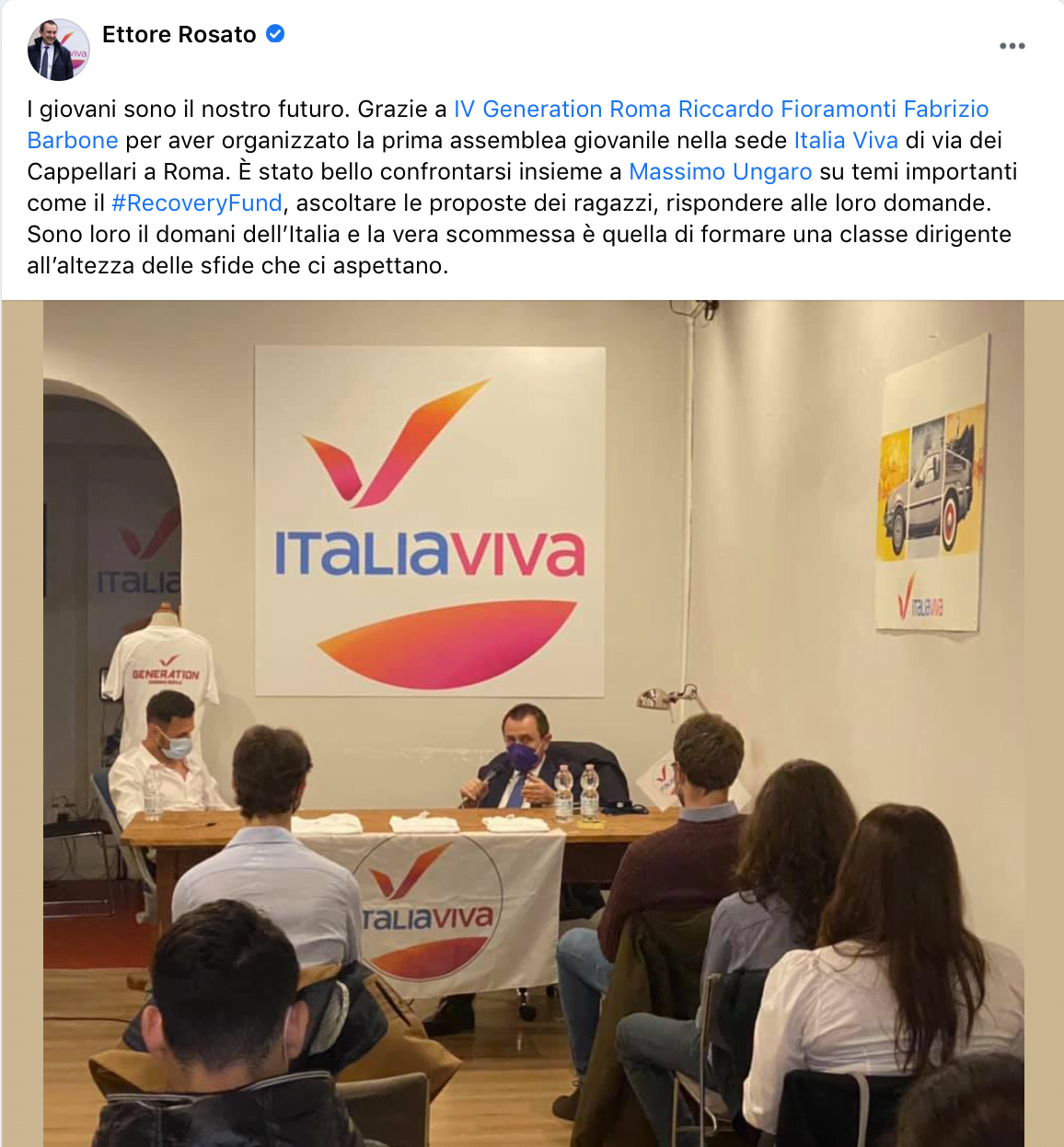 Anche di questo, dei progetti del #NextGenerationEU, ho parlato nell’evento organizzato dai giovani di IV a Roma