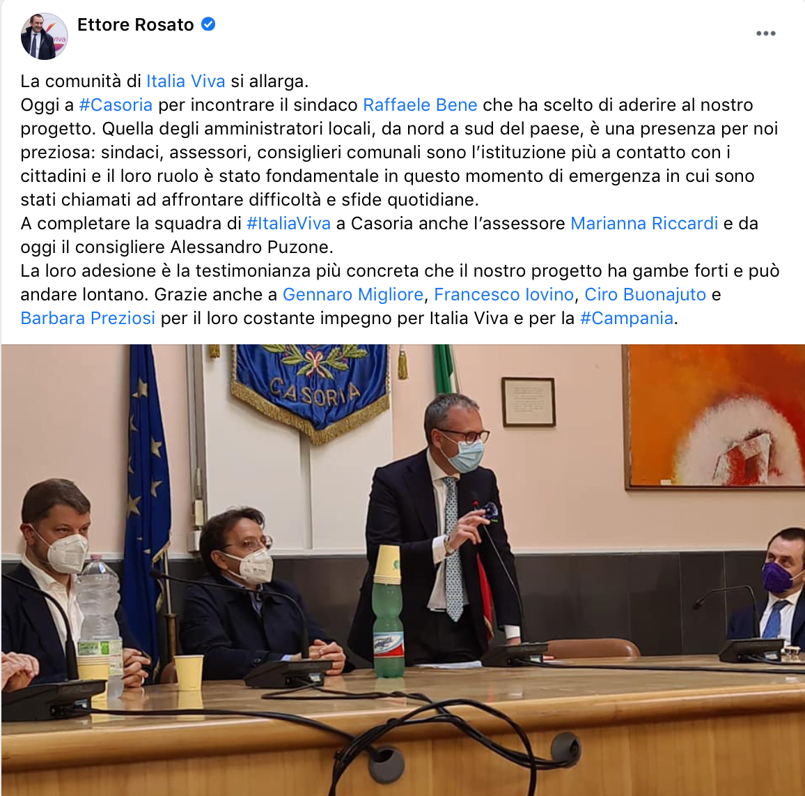 Intanto la casa di Italia Viva diventa sempre più grande. Sono stato a Casoria per accogliere nella nostra famiglia il sindaco Raffaele Bene che assieme all’assessore Marianna Riccardi e al consigliere Alessandro Puzone si unisce alla squadra di amministratori che abbiamo in tutto il Paese, una risorsa preziosa per la nostra comunità.