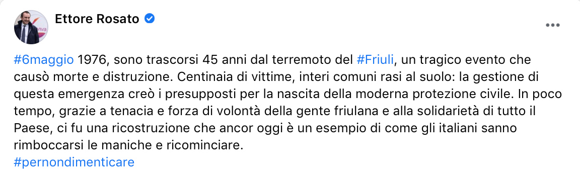 Anche loro sono tra gli eroi intervenuti subito per aiutare le zone colpite dal terremoto del Friuli (il 6 maggio 1976). Mai dimenticare la tenacia della gente friulana e la solidarietà di tutto il Paese: gli italiani sanno rimboccarsi le maniche e ricominciare, troviamo oggi la stessa forza di ieri.