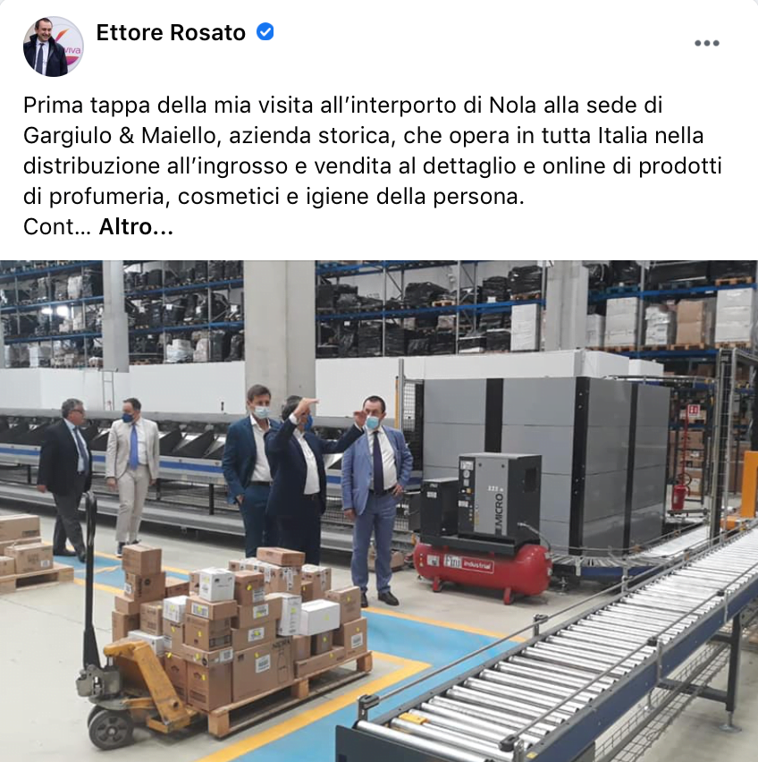 Venerdì sono stato in Campania, in visita all’interporto di Nola (scopri qui) e ad alcune delle imprese insediate in questo polo, come la Gargiulo e Maiello, leader nei prodotti per la persona.